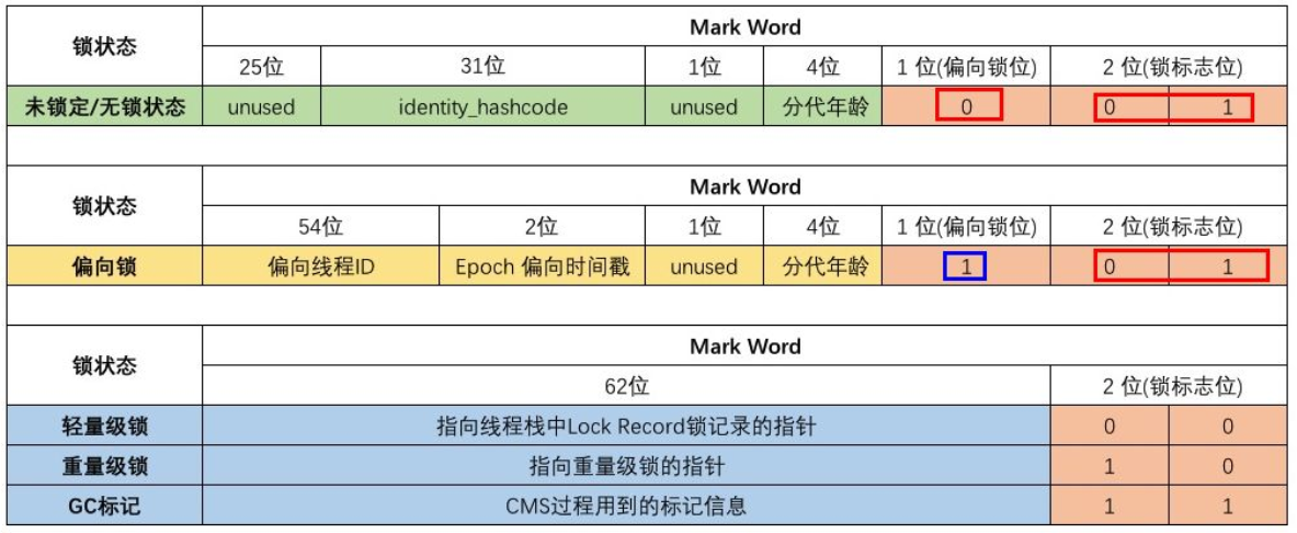 当一个线程访问同步代码块并获取锁时,会在Mark Word里存储锁偏向的线程ID。在线程进入和退出同步块时不再通过CAS操作来加锁和解锁,而是检测Mark Word里是否存储着指向当前线程的偏向锁。引入偏向锁是为了在无多线程竞争的情况下尽量减少不必要的轻量级锁执行路径,因为轻量级锁的获取及释放依赖多次CAS原子指令,而偏向锁只需要在置换ThreadID的时候依赖一次CAS原子指令即可。