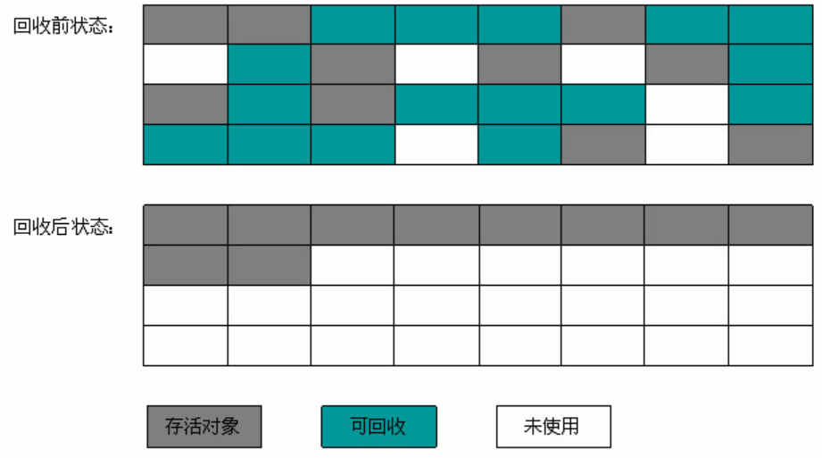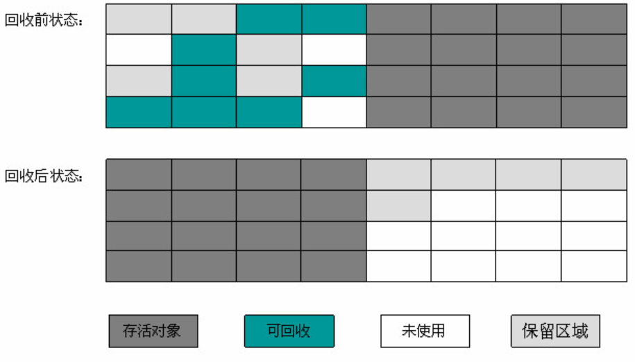 - 如果跟“标记-清除”一样,完全不考虑内存碎片的话,那便只能依赖更为复杂的内存分配器和内存访问器来解决。内存的访问是用户程序最频繁的操作,假如在这个环节上增加额外的负担,势必会直接影响应用程序的吞吐量。