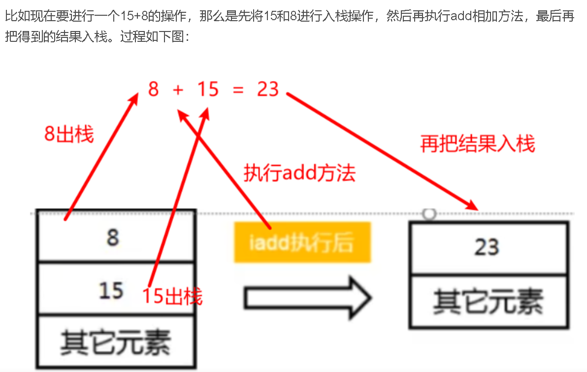(2)操作数栈:     每个独立的栈帧中除了包含局部变量表以外,还包含一个后进先出的操作数栈,也可以称为 表达式栈。操作数栈可以认为是,在一个方法中,用来暂时存放执行复制、交换、求和等操作的临时工作区,主要用于保存计算过程的中间结果,同时作为计算过程中变量临时的存储空间。当一个方法刚开始执行的时候,一个新的栈帧也会随之被创建出俩,这个方法的操作数栈是空的。如下图: